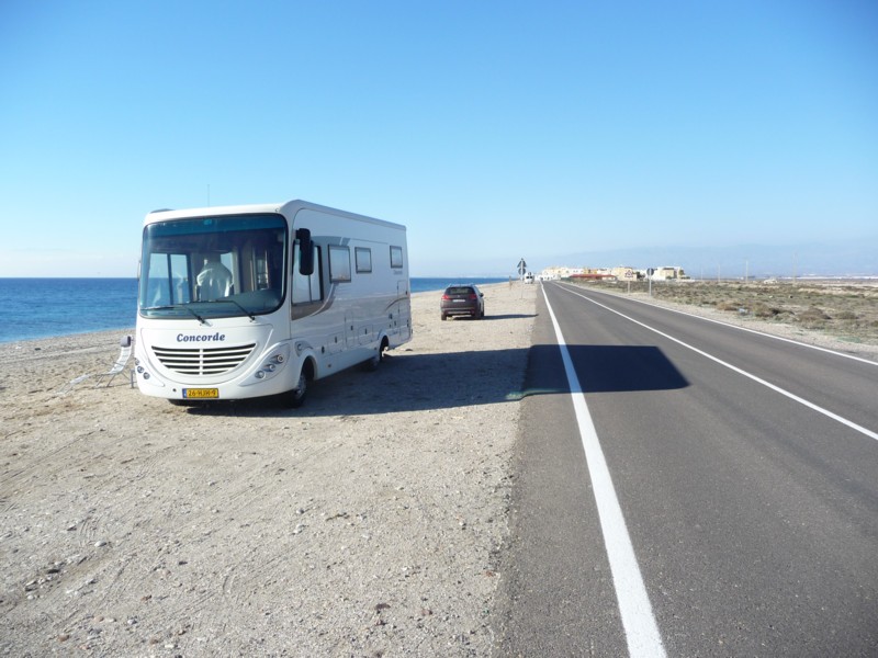 Na een prima verblijf op de camperplaats in Vera gaan we weer verder en rijden naar de camperplaats in Fabriguile. De camperplaats ligt vlakbij Cabo de Gata....en je staat er pal aan het strand. Er is verder niet veel te doen of te beleven en in Cabo de Gata zijn een paar kleine buurtsupers...en dat is alles, maar je kan heerlijk een paar dagen aan het strand vermaken en dat hebben wij ook gedaan.